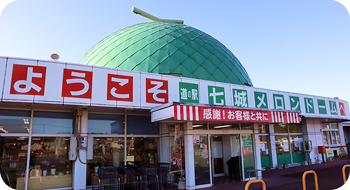 1995年に熊本県北部に位置する菊池市に完成したメロンドーム。地元のメロンを中心とした旬のフルーツや加工品を販売していて、「道の駅」としても賑わっている人気観光地です。